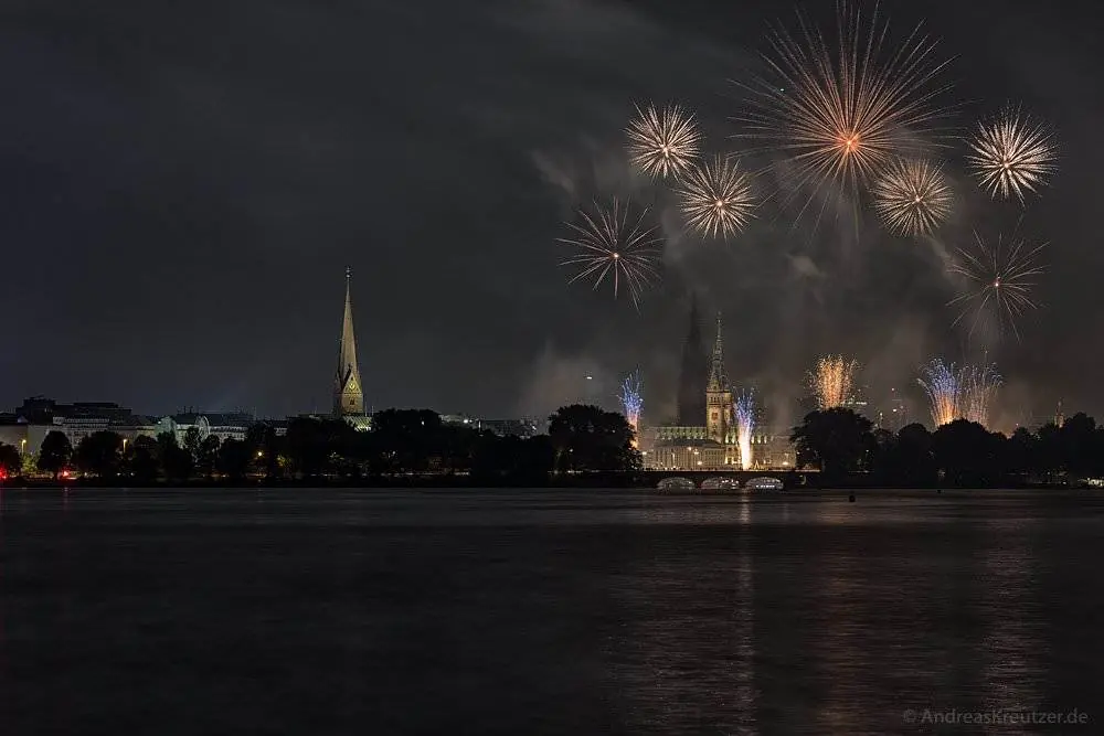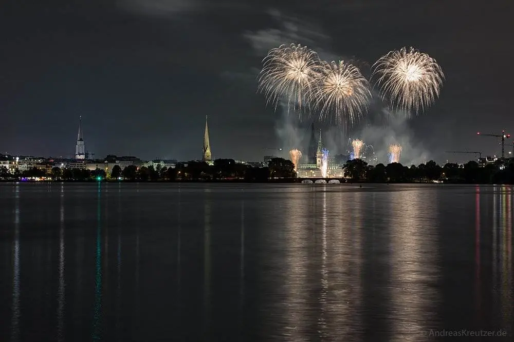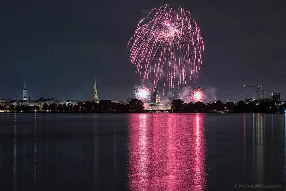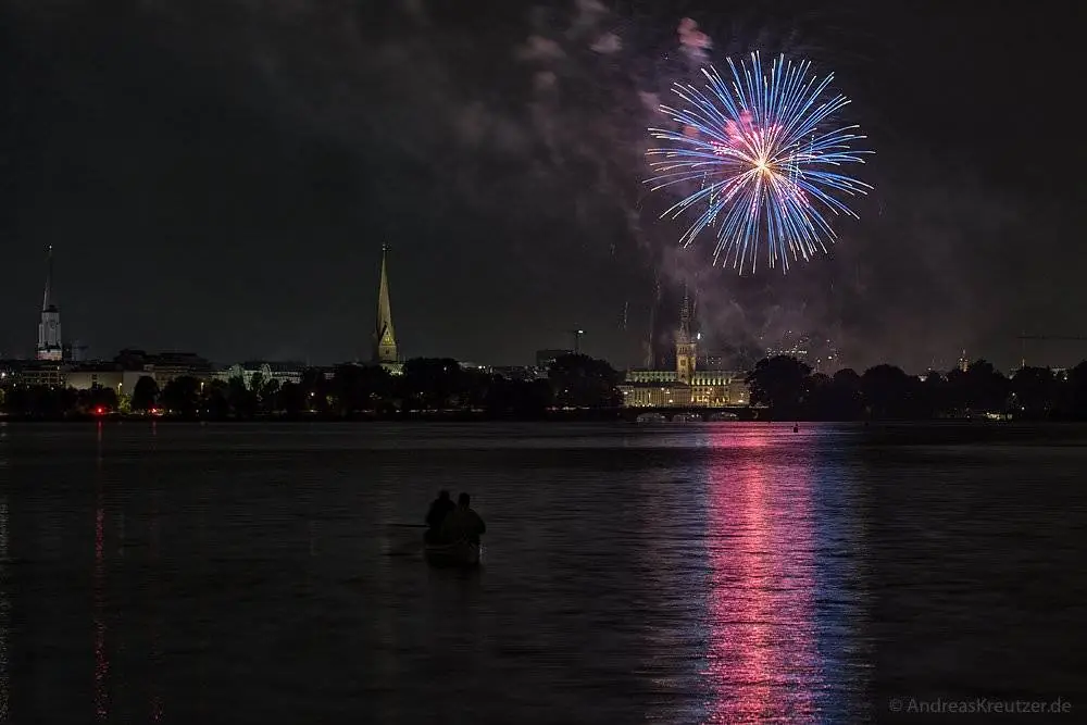 Feuerwerk auf der Hamburger Außenalster zum Kirschblütenfest