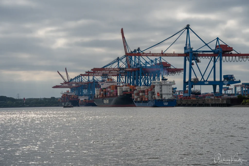 Wenn es um Containerschiffe geht, ist der Waltershofer Hafen das non plus ultra. Hier liegen üblicherweise die größten Containerschiffe. Hier die EVER ACE, Estelle Maersk und HMM Garam – alle um die 400 Meter lang.